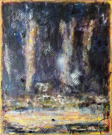 At the heart of the work is his belief that there are too many good ideas in the world appearing each day to paint the same things all the time, in the same approach. Most recent paintings focus on the development of ambiguous spaces and borders, apertures, framing and creating a continuation of the painting beyond the composition. These small paintings seem to shine like jewels, changing with the light at different times of the day and whilst appearing abstract and decorative at times, they retain substance and relevance to the world in the references to spaces and moments important to us.